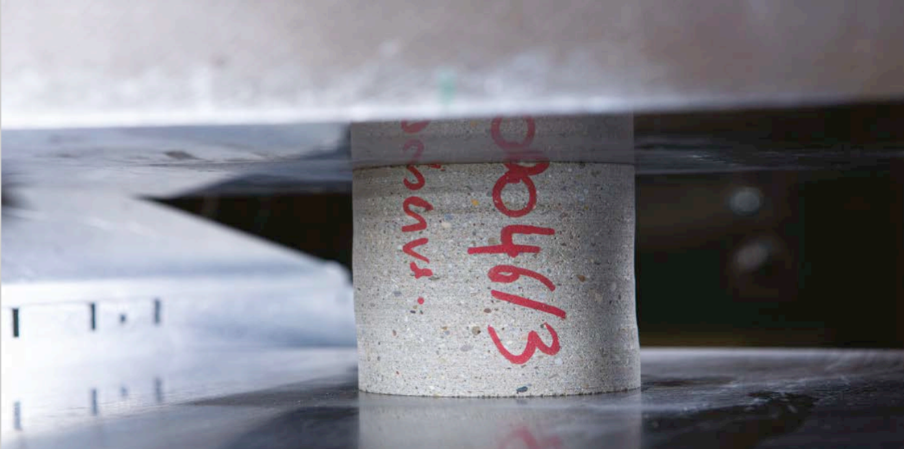 La norme impose que les carottes aient deux fois la hauteur de leur diamètre ou aient une hauteur égale à ce diamètre, comme sur notre photo. Mais la grandeur de ce diamètre influence aussi la résistance mécanique. Le projet de recommandation technique FprCEN/TR 17086 - à la base de la norme - prévoit pourtant un facteur de correction, en stipulant que la résistance en compression d'une carotte de 10 cm de hauteur et de diamètre correspond à celle d'un cube de 15 cm de côté. Buildwise (www.buildwise.be) recommande dès lors de travailler avec ces dimensions.