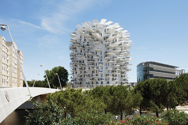 L’Arbre Blanc domine de près de 50 mètres les quartiers Port Marianne et Antigone et compte 112 appartements répartis sur 17 étages. Le chantier, réalisé en trois ans, a mobilisé jusqu’à 1.500 personnes. Parmi les prouesses architecturales et techniques du chantier, on notera avant tout la conception des terrasses, avec des porte-à-faux inédits allant jusqu’à 7,5 mètres de long. Pour leur pose aux différents étages, une technique inspirée du pont levis a été imaginée et une grue dotée d’une plateforme réalisée sur mesure avec un contrepoids motorisé a été utilisée. Chaque terrasse est équipée de pare-vents et peut soutenir jusqu’à 350 kg/m2.
